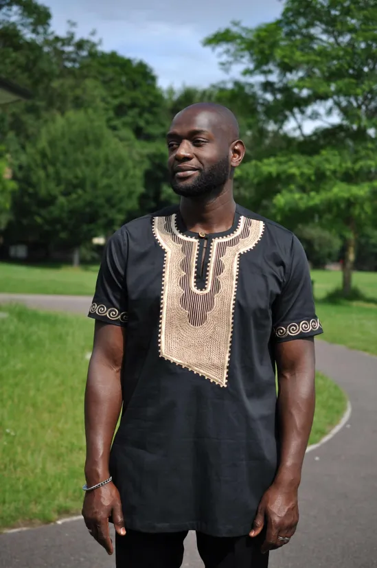 • Black and Gold Men’s African Traditional Embroidery Shirt Black and Gold Men’s African Traditional Embroidery Shirt £75.00