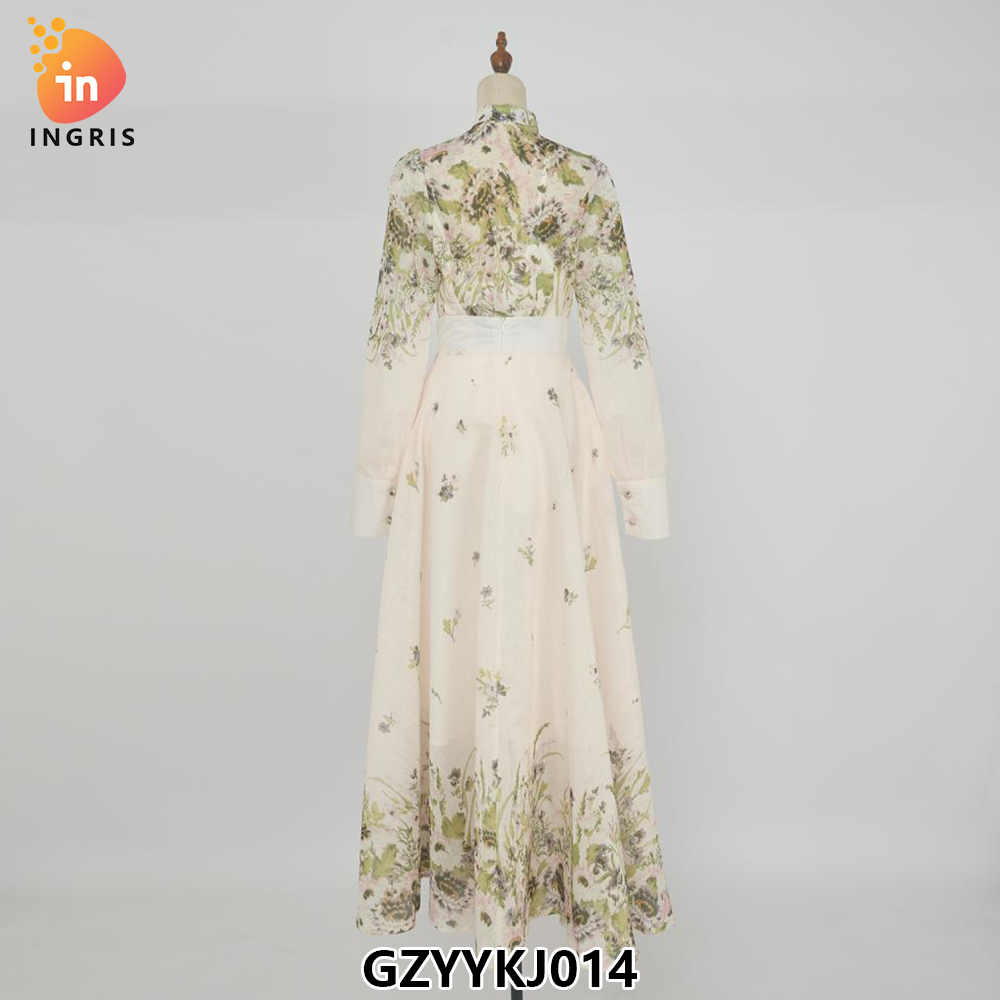 Spring New Stand Collar Single-Breasted Long Sleeve Retro Floral Print Loose Lace Waist Long Casual Floral Chiffon Summer-GZYYKJ068