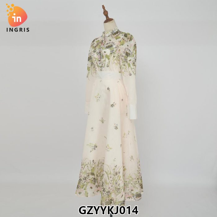 Printed Slim Long Long Swing Gowns Bubble Sleeve Dresses-GZYYKJ046