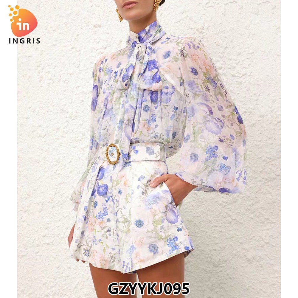 Hot Sale High Quality Stand Collar Floral Loose-Fit Long Sleeve Bodysuits Women Short Jumpsuit Bohemia Style Linen Playsuits-GZYYKJ095