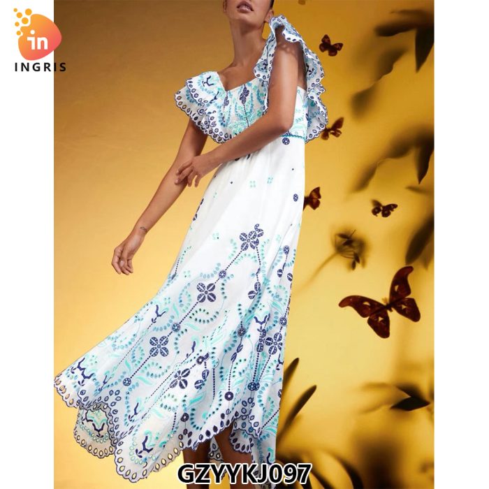 Summer Women’s Pleated Dress Women’s Clothing Dress Round Neck Women’s Floral Party Dress-GZYYKJ097