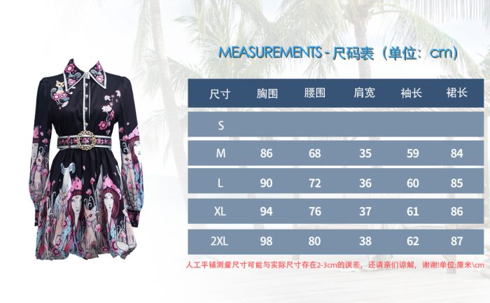 Retro Style Printed Long Puff Sleeve Slim Waist V-neck Dress High Sense Single Breasted Large Swing Dress-GZYYKJ036